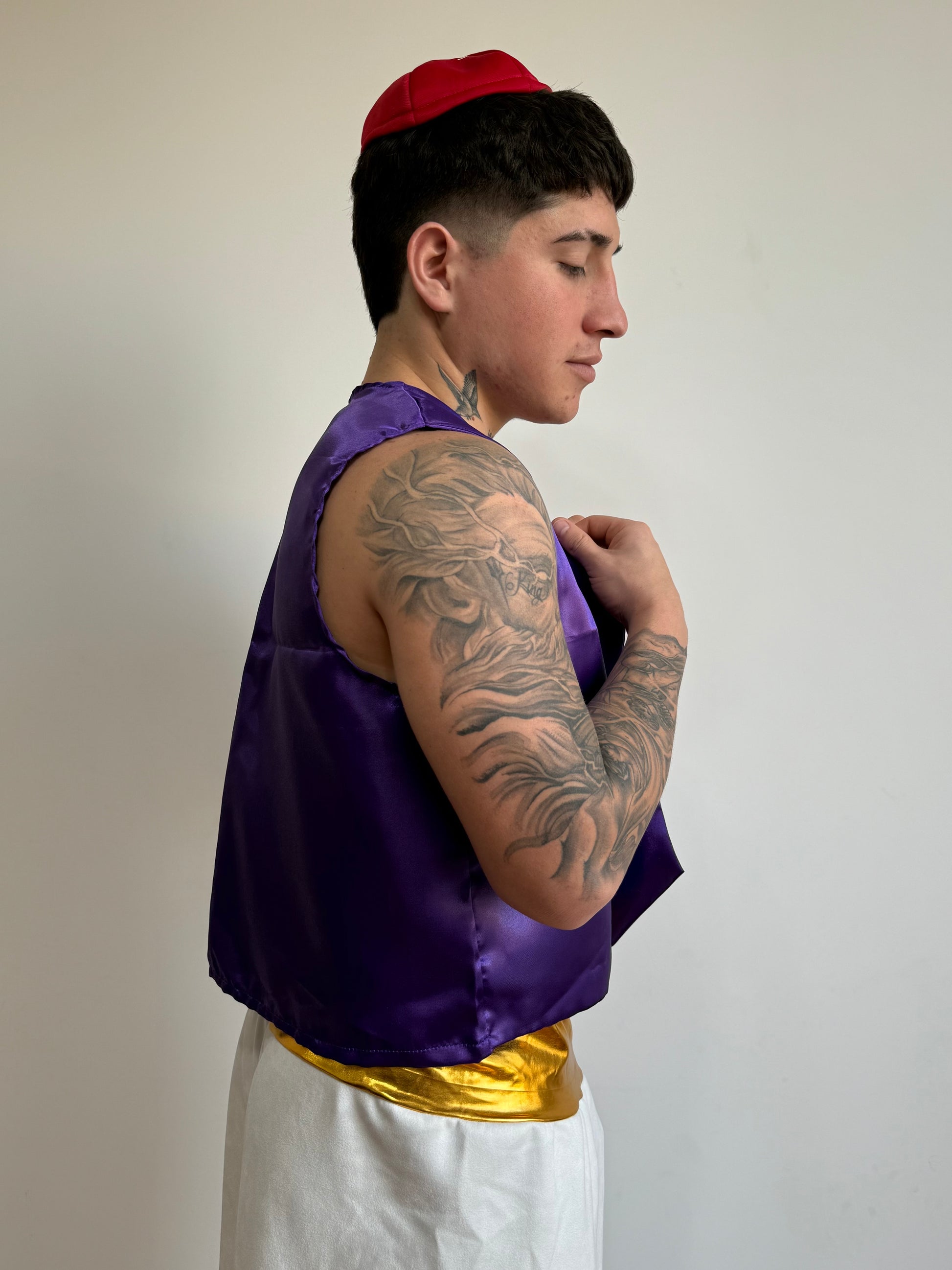 El traje consta de 3 piezas: pantalón, chaleco y gorro