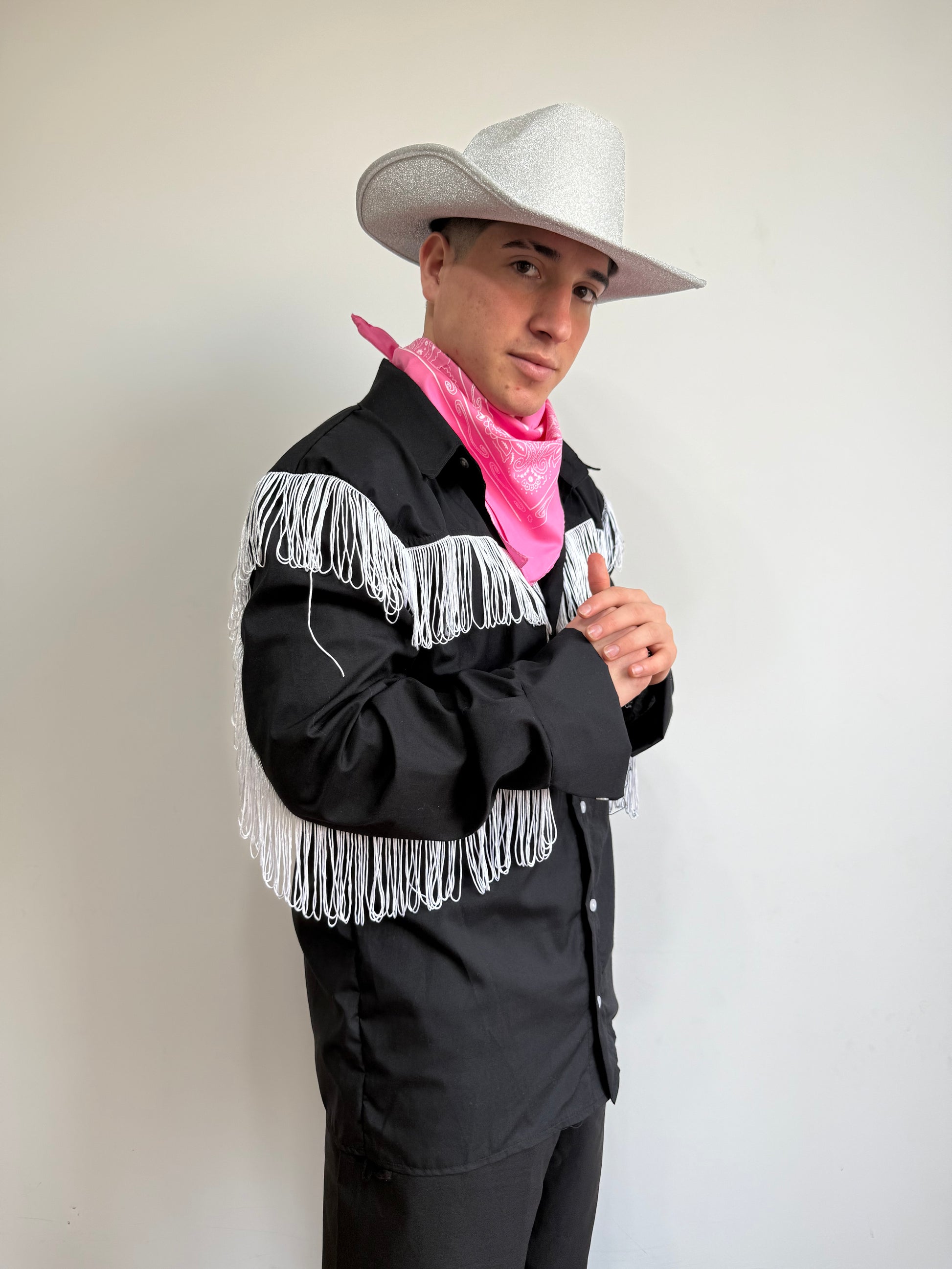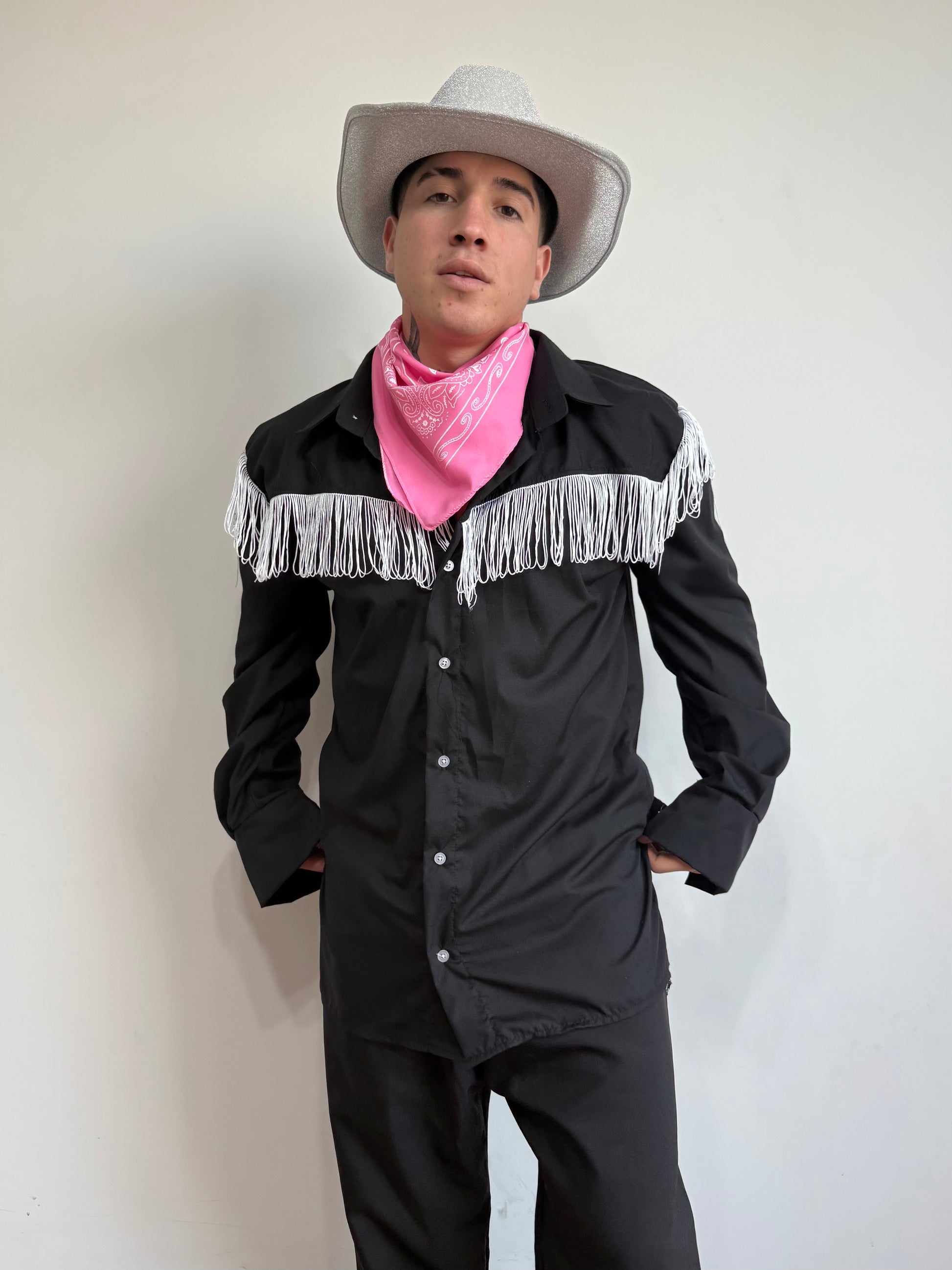 El traje consta de 3 piezas: camisa con flecos, pañuelo y sombrero