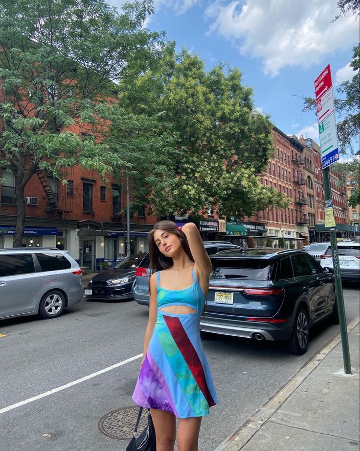 Vestido corto de verano con espalda descubierta y collar mariposa. El traje consta de 2 piezas.